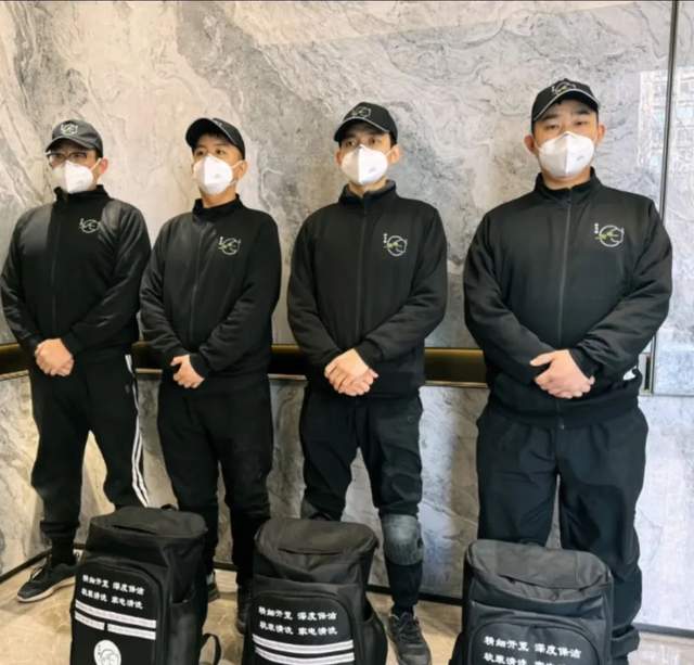 這類保潔工作量很大,一個人幹不了。馬哥目前有一個5人的小團隊,成員全都是“男阿姨”。