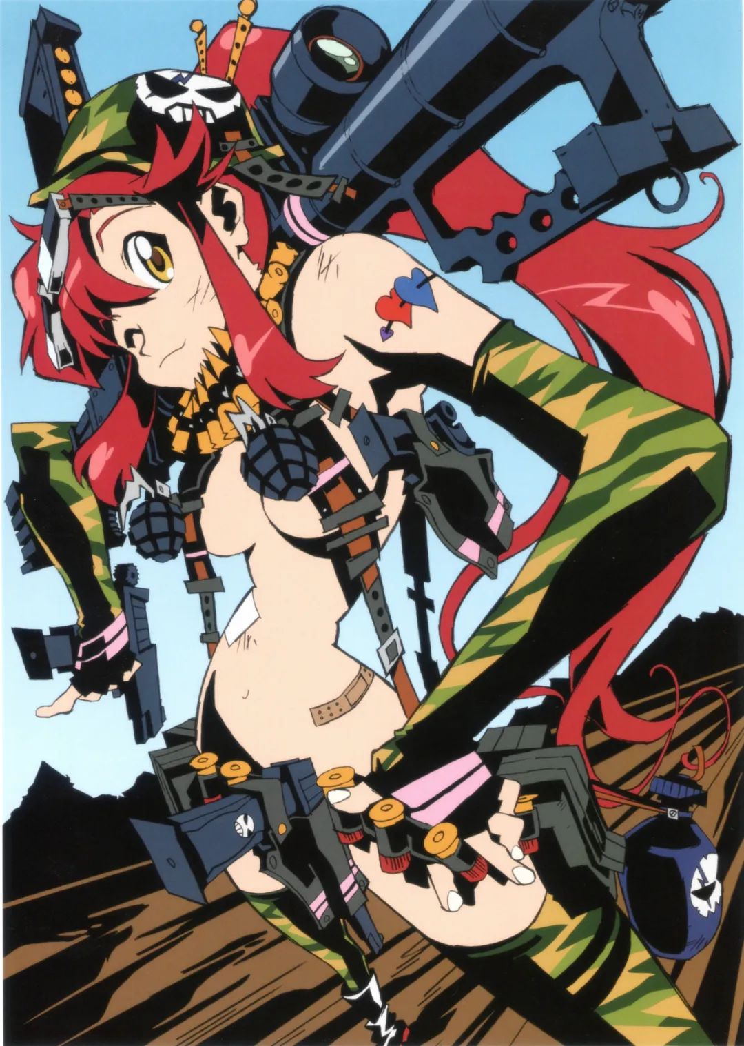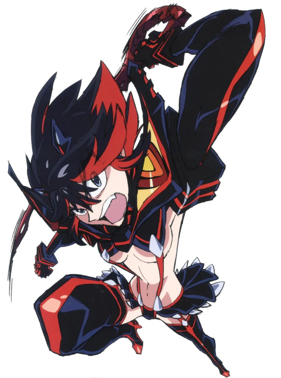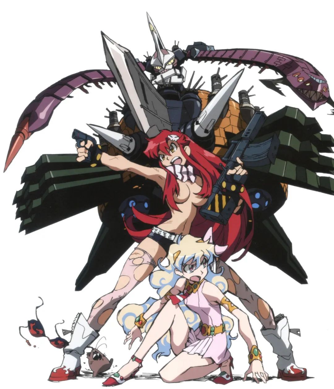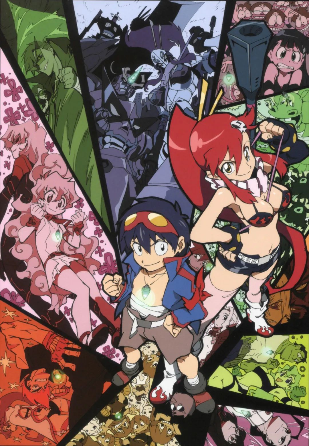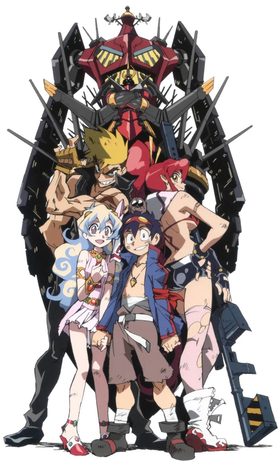 從《雙斬少女》中代表階級和慾望的“衣服之戰”、《天元突破》中象徵人類不屈精神的“鑽頭”,到《吊帶襪天使》中用美式畫風講日式冷笑話,他用極端熱血的少年漫外殼,包裹着成人向的社會隱喻,塑造着獨特的暴力美學童話。