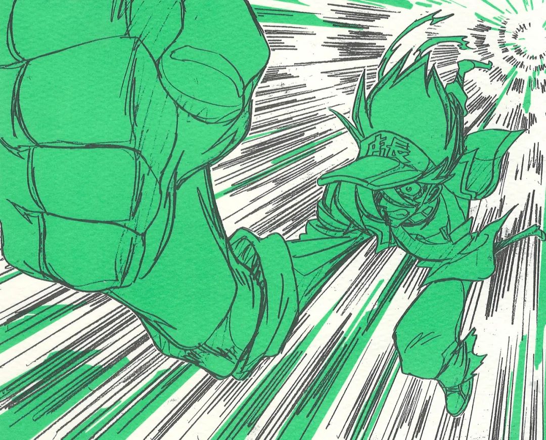 面對滿屋子的資深畫師,自知質量難敵的今石洋之決定靠量取勝,硬啃下了30個鏡頭,還得到了金田伊功的親自指導。