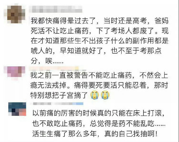 然而,一些對止痛藥的誤解,卻使得很多女性寧願嘗試五花八門的偏方,也不願意吃止痛藥。很多女生因為害怕止痛藥的副作用,只能生生忍着劇痛。這都是我們非常不願看到的。