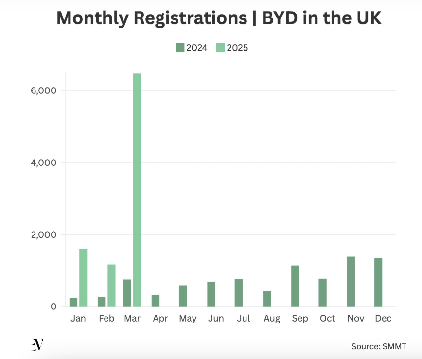 第二,突破歐洲市場。這既在意料之外,也在情理之中。意外的是,比亞迪拿下的第一個歐洲國家,竟然是英國!今年3月份,比亞迪在英國月銷暴漲754%,接近6500輛。