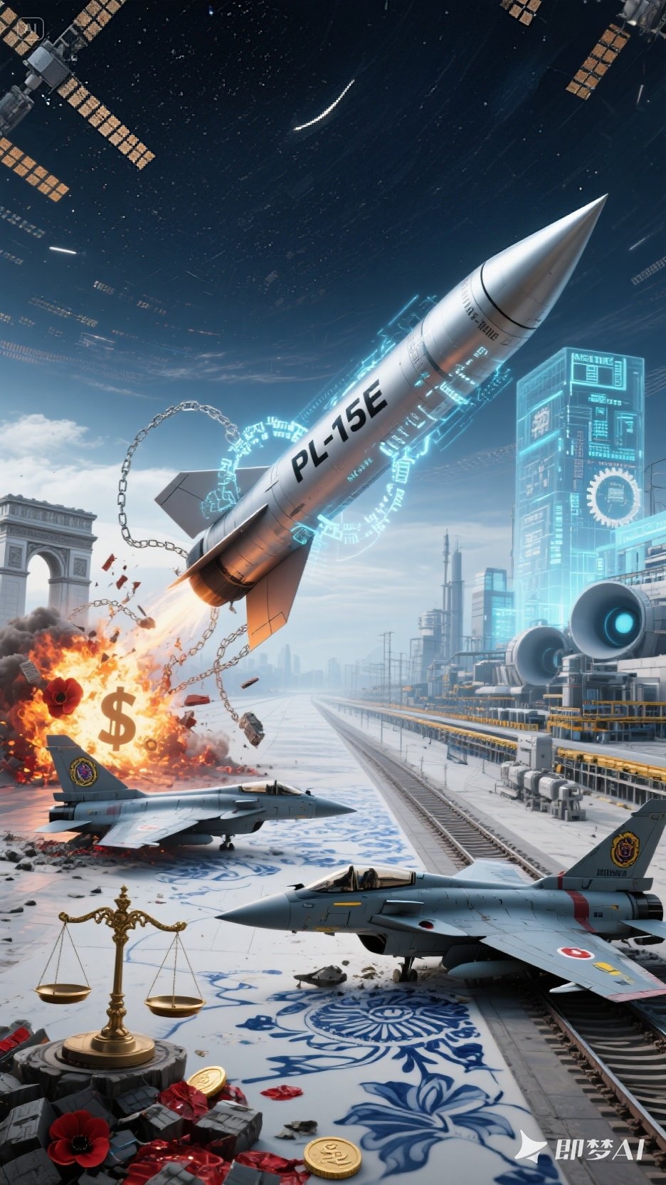 “轟!”價值2.9億美元的戰爭機器在空中解體時,一塊鑲着達索公司徽章的鈦合金蒙皮旋轉着墜向冰川。它最終插在海拔5000米的雪坡上,旁邊是半截印着中國製造編號的導彈尾翼。