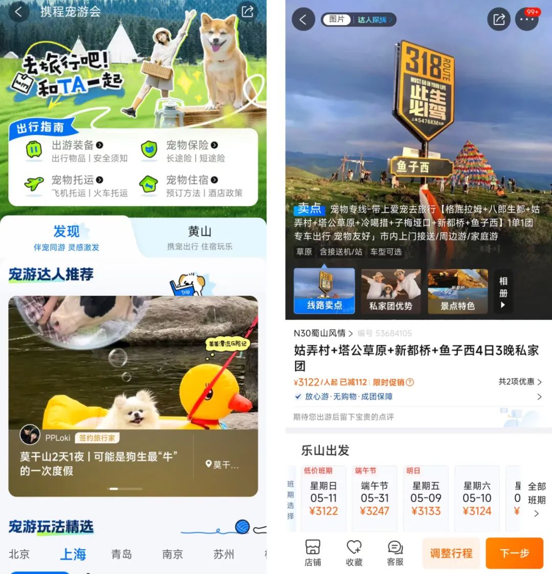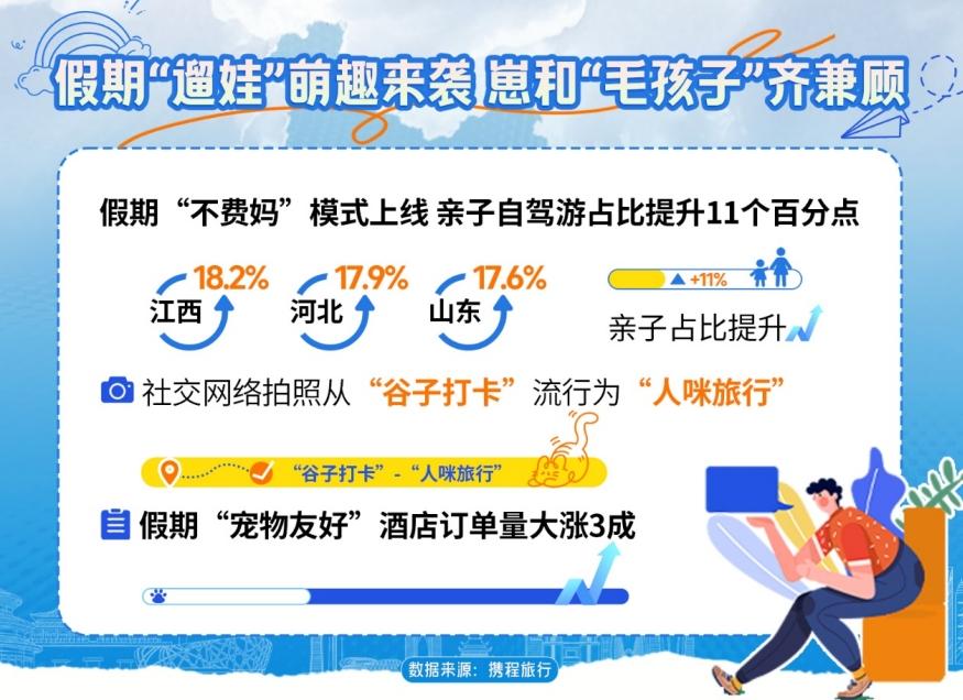 攜程旅遊數據報告顯示,今年“五一”假期國內旅遊市場呈現出“遛娃”與“毛孩子”雙線並進的新趨勢,攜寵出遊的年輕羣體催生“寵物友好”服務升級。