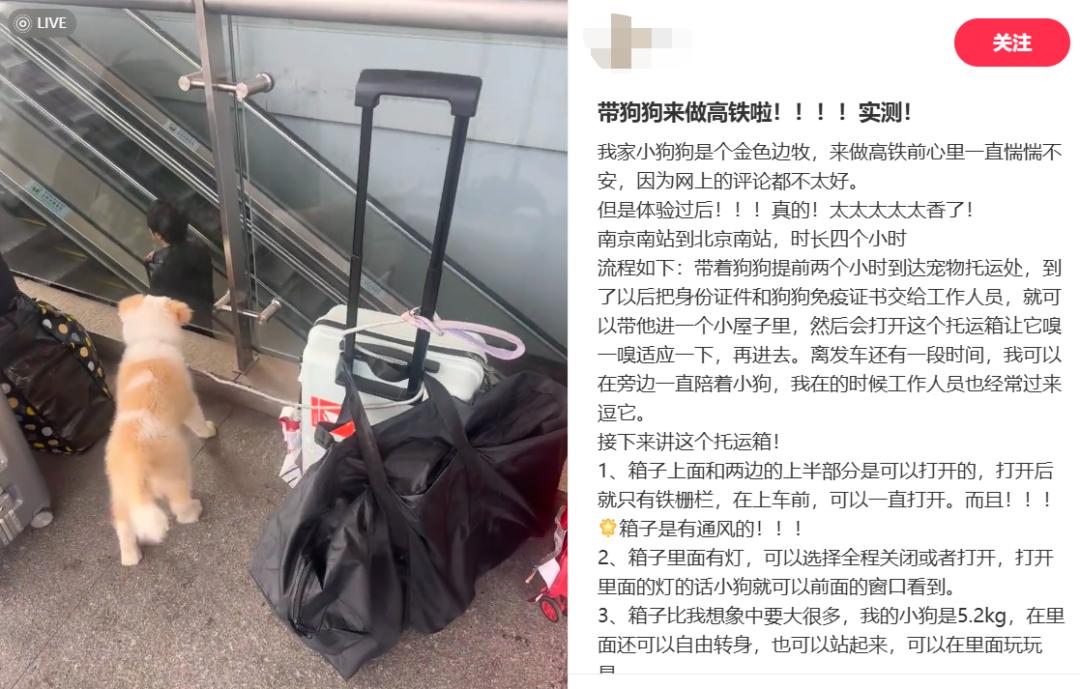 今年4月,國內高鐵開始試行的寵物託運服務,也成了不少人攜寵出遊的新選擇。