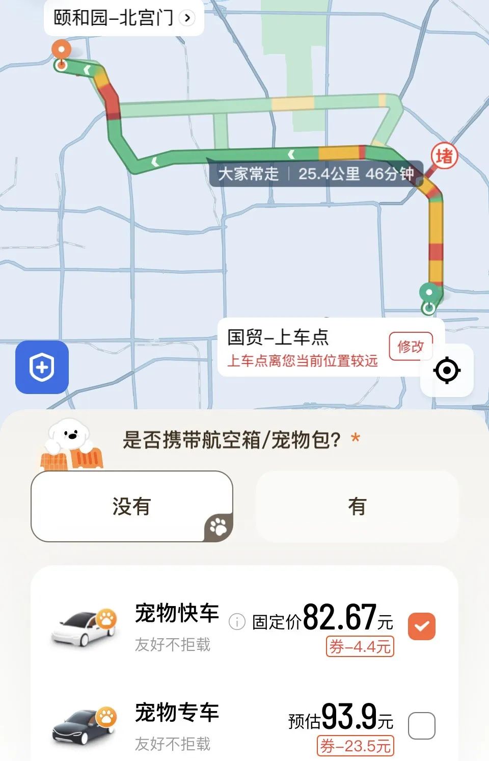 雖然滴滴上的寵物快車支持跨城運送,但由於快車價格昂貴,攜寵遠途遊的鏟屎官還是傾向於打順風車。