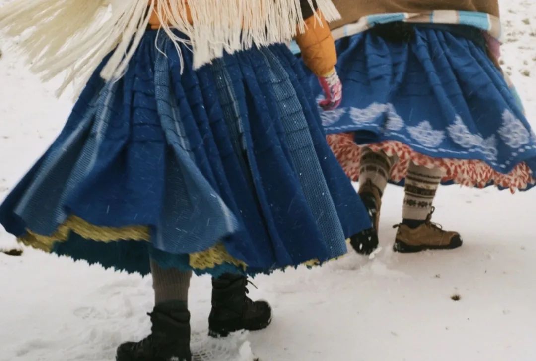 她們漂亮的傳統褶裙,無論是設計裁剪還是色彩搭配,放到今天也極具審美價值和民族特色——裙襬層次豐富,蓬鬆飛揚,象徵着富饒的南美大地;刺繡明豔精緻,則對應着四季變換與風雪輪迴。