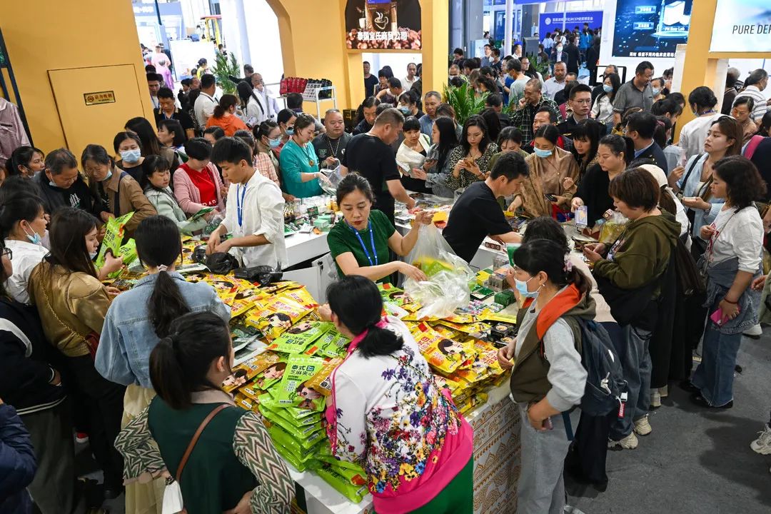 首屆湖南(懷化)RCEP經貿博覽會,泰國展廳前聚滿了“海淘”的市民