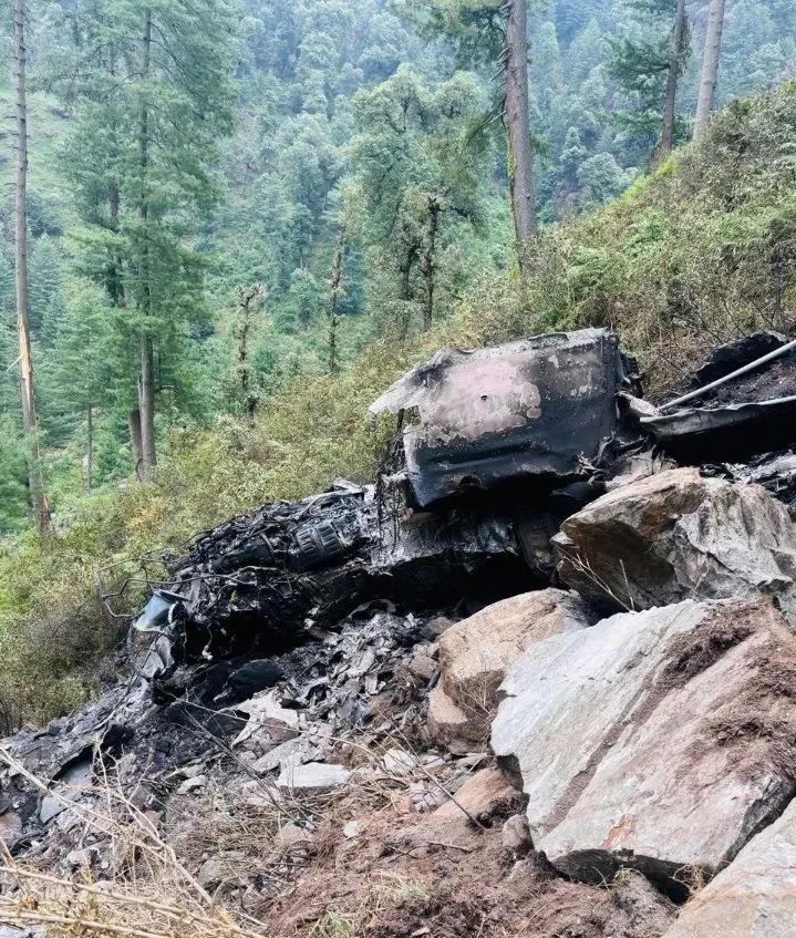 巴基斯坦空軍戰果四:印控克什米爾拉姆班(Ramban)地區,普爾潘賈爾山脈北坡原始森林裏,7日下午有當地老鄉在森林裏拍到了一架戰鬥機的殘骸,同時還有一個掉在地上摔碎了的彈射座椅。