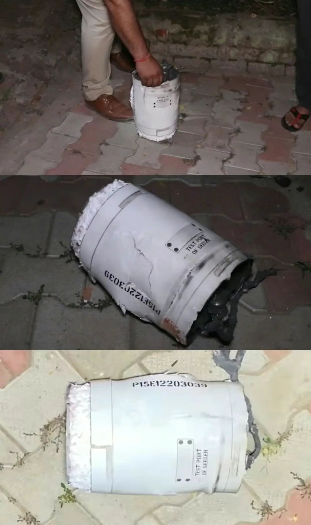 巴基斯坦空軍疑似戰果三:是旁遮普邦北部的霍希亞布爾(Hoshiarpur)地區,有印度人撿到了一個彈體上標註着“P15E12203039”字樣的組件,判定這是巴基斯坦空軍發射的一枚PL-15E空對空導彈殘片。