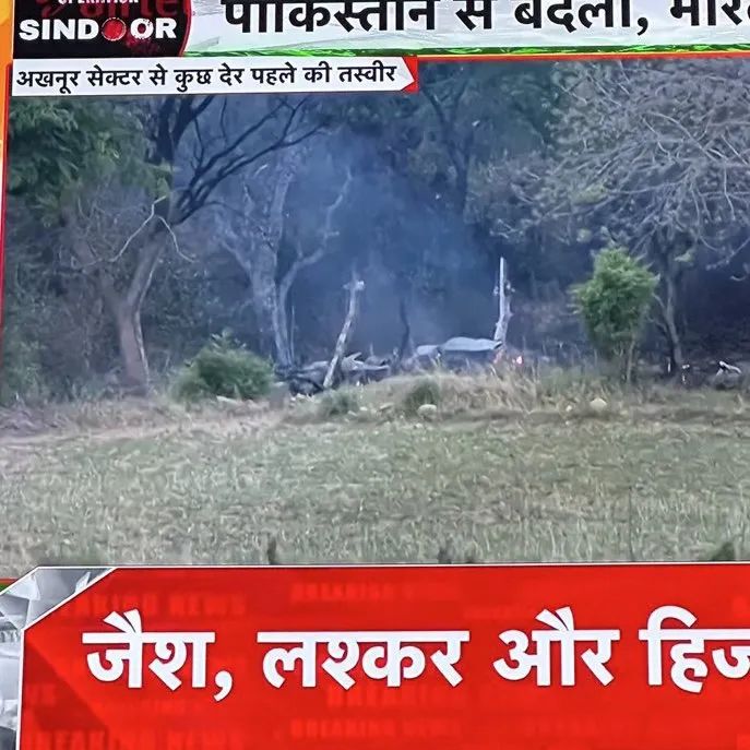 巴基斯坦空軍戰果三:印控克什米爾地區普爾潘賈爾山脈南麓賈姆穆(Jammu)地區阿克諾爾(Akhnoor)村,趕到現場的印度媒體拍到了一架掉在樹林裏、有兩個垂直尾翼的戰鬥機。當地村民在接受採訪時表示,有2個飛行員跳傘逃生。