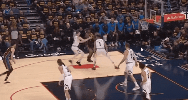 這一招發揮了切特的遊弋:下一回合,穆雷和戈登輪番突破三次,都被切特放空布勞恩來補位籃下嚇退;穆雷最後突分底角布勞恩,切特輪轉幹擾:投丟。