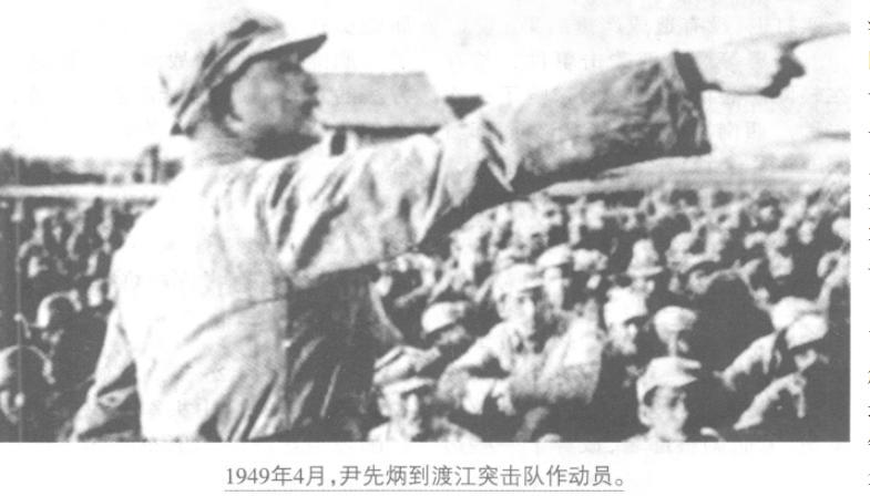 渡江戰役前夕,為了完成上級交代下來的作戰任務,尹先炳工作七天七夜,最後在部隊成功渡江到南岸時,終因勞累過度昏睡過去,尹先炳睡了一天才醒來。