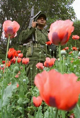 墨西哥在2013年成為第二大海洛因生產國,2019年罌粟種植面積全球第三。如今美國的毒品90%都來自於墨西哥。目前墨西哥毒販已經控制了超過46%的墨西哥國土。