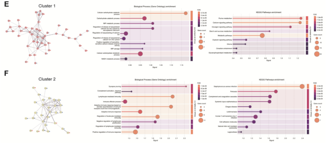 圖注:年輕和氯硝柳胺處理的老年組中有137個基因表達相似,主要為代謝或肌肉收縮、免疫和炎症兩個功能聚類