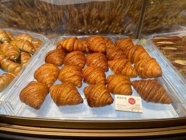據店員介紹,目前門店面包產品有50餘款,涵蓋歐包、可頌、法棍、吐司等常見烘焙品類和核桃馬里奧、小熊麪包等網紅產品,門店還推出了具有杭州特色的“西湖龍井”口味麪包。
