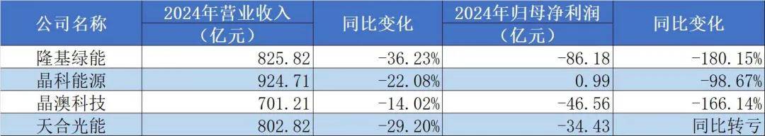 光伏行業業績承壓,並非個案。從國內各大光伏巨頭的2024年財報數據來看,收入下滑、由盈轉虧是普遍存在的現象。