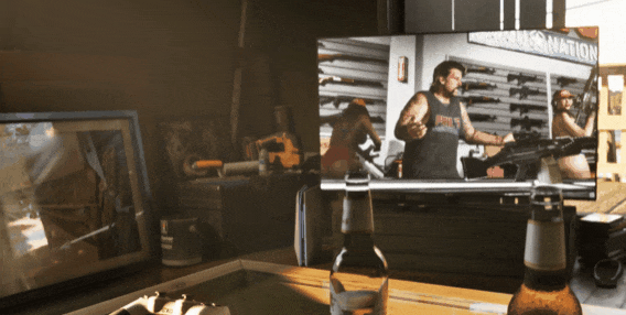 而在同一個畫面中,透過啤酒瓶會根據電視畫面折射出不同的光影,瓶子中也有着啤酒上升的氣泡……而像這樣的細節在整個預告片中隨處可見,也不難理解最近各路技術播主紛紛開始下場研究分析。