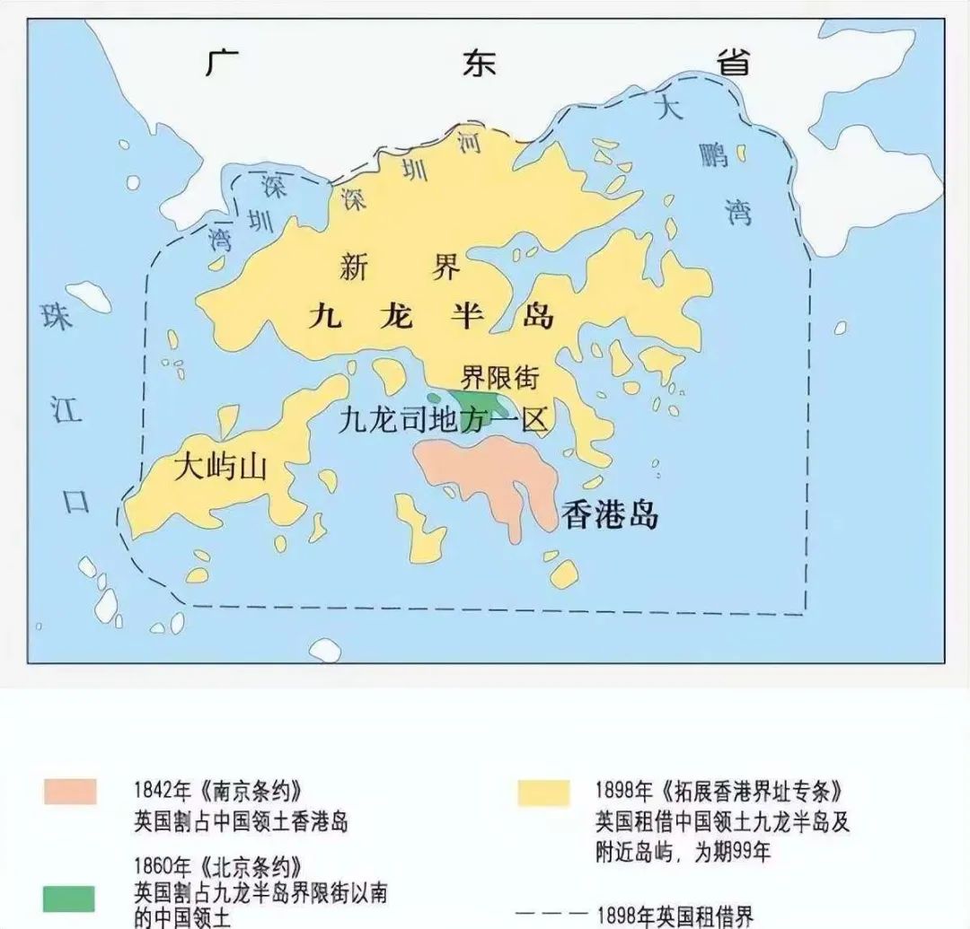 如果想要真正瞭解“九龍城寨”,我們還需要回顧香港成為殖民地後的漫長曆史。“九龍” 這個稱謂形成於宋代,彼時的九龍寨是一個被稱為“官富場”的官方鹽場,清代為了抵禦海盜,這裏又變成了炮台;1841年鴉片戰爭,香港島割讓給了英國,與仍是清政府統治的九龍半島一水相隔;之後九龍寨外圍修築了城牆、設立了衙門,變成了名符其實的“九龍寨城”,作為與香港殖民政府對峙的官府機構;1860年第二次鴉片戰爭之後,清廷又被迫將九龍半島界限街以南的部分割讓出去,九龍寨城則正好位於界限街的北部;1898年,中英再次簽訂《展拓香港界址專條》,英國強行租借新界,至此,除九龍寨城外,香港全部淪為殖民地。