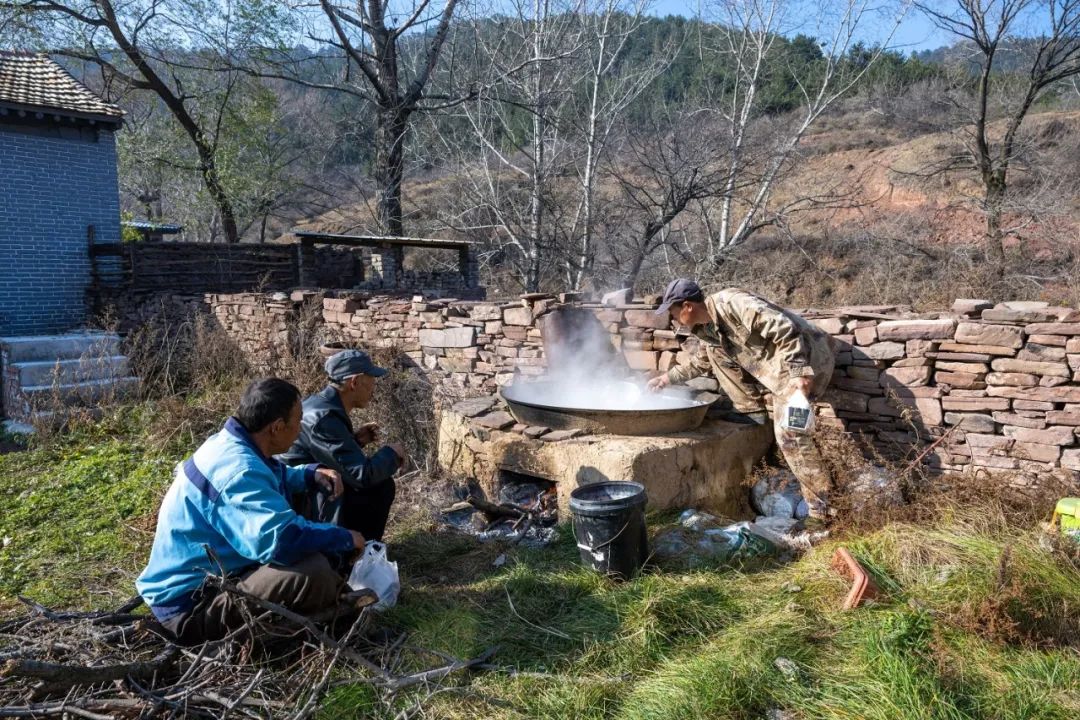 去年的豐收宴,我們讓飲馬池的村民為宴會做炸糕坯和磨豆漿,就是一種讓個體為集體、為他人開展無償服務的嘗試。記得豐收宴前一晚,夜燈之下,飲馬池人圍坐在一起搓着黃米糕,歡聲笑語,其樂融融,視頻發到全村羣中,樂毅、小南溝的老鄉們大聲誇獎和感謝他們,那一刻,相信每一個人都能感受到“付出”的美好。