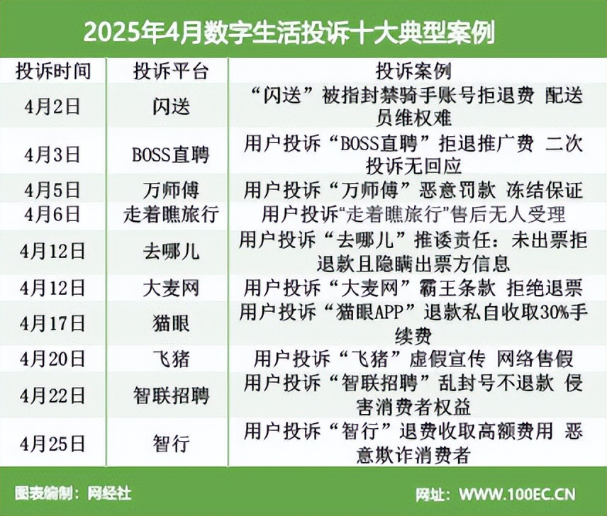 閃送 BOSS直聘 萬師傅 去哪兒等入選4月全國數字生活十大典型投訴案例_風聞