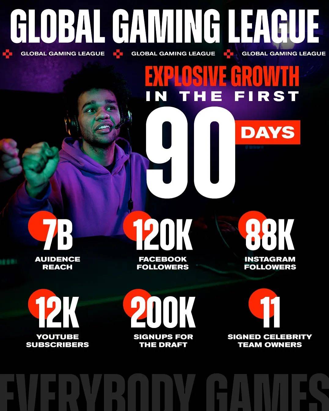 融資之外,賽事本身也在飛速發展,截至3月底,GGL社媒粉絲和報名人數均超過20萬,名人註冊的隊伍數量則來到11支。可以説,在北美地區,GGL已經是一股不可忽視的電競新力量。