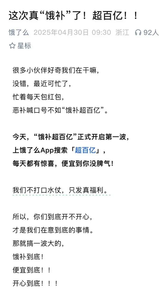 一向波瀾不驚的餓了麼,也再也無法穩坐釣魚台,啓動了“餓補超百億”外賣補貼計劃,並表示不打競爭口水仗,“只發真福利”。