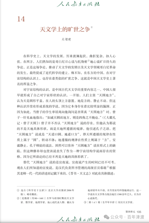 高中選擇性必修下冊有篇課文——《天文學上的曠世之爭》,裏面講到了中國古代幾千年的天文學發展歷史,要解答“兩小兒辯日”的問題需要結合天文學知識。