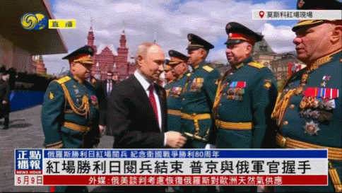 ▲遺憾的是朝鮮並沒有派出閲兵方隊,也沒有坐在主席台上觀禮,但是在看台下方有多名朝鮮將軍與普京進行了握手交談,並互相擁抱。