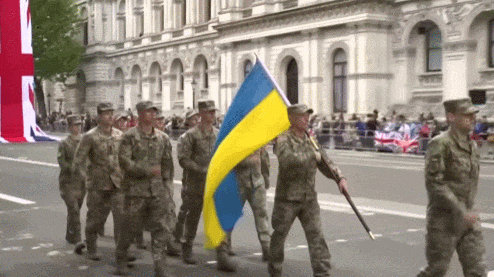 ▲注意看5月5日英國閲兵活動上,烏克蘭11人的順拐方隊從馬屎上踩了過去