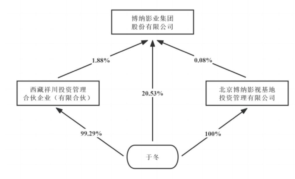 截至去年年末,於冬直接持有博納影業20.53%的股份。與此同時,西藏祥川投資管理合夥企業(有限合夥)、北京博納影視基地投資管理有限公司分別持有博納影業1.88%、0.08%的股份。天眼查顯示,前述兩家企業的實際控制人均為於冬。