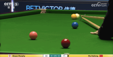 對陣馬海龍時,馬海龍一杆漂亮的解斯諾克,墨菲拍桌致意打得漂亮