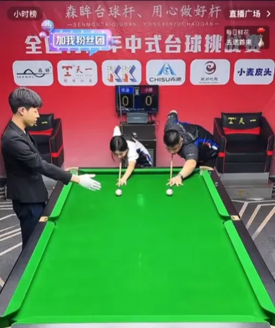 但從選手打出第一杆開始,所有蹲在直播間的觀眾都會意識到,這更像一場精心策劃的搞笑直播:選手一開始會進行比杆,兩人同時擊打白球,誰的球停到更接近頂庫,誰就贏得開球權。但有時候,選手會在這一步就開始犯規,比如“不慎”將對方白球直接打進球袋。