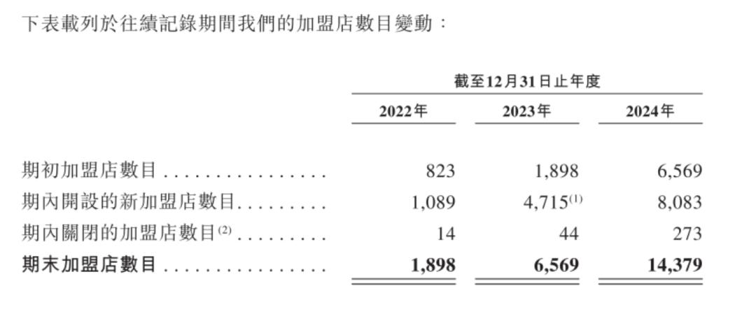 數據顯示,2022年-2024年,鳴鳴很忙新開出的加盟店分別為1089家、4715家和8083家,其去年新開店的數量,較2023年翻了近一倍。
