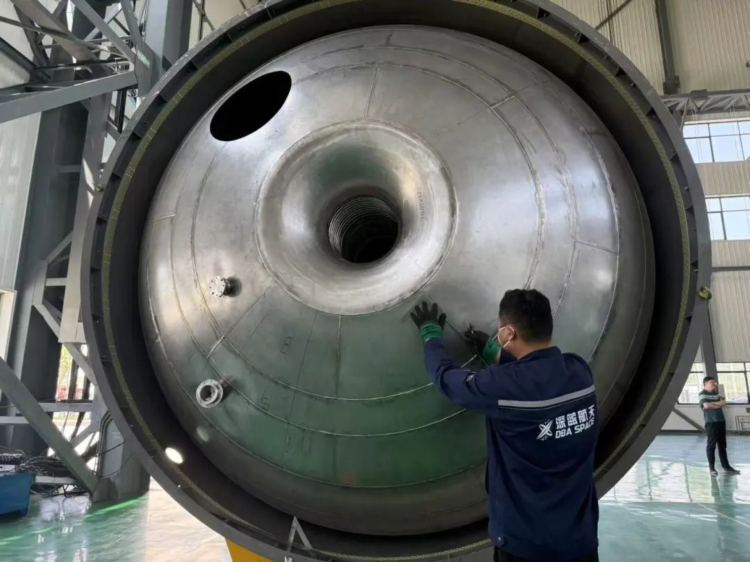 深藍航天廠房內,技術人員正在對燃料貯箱進行焊接點標註