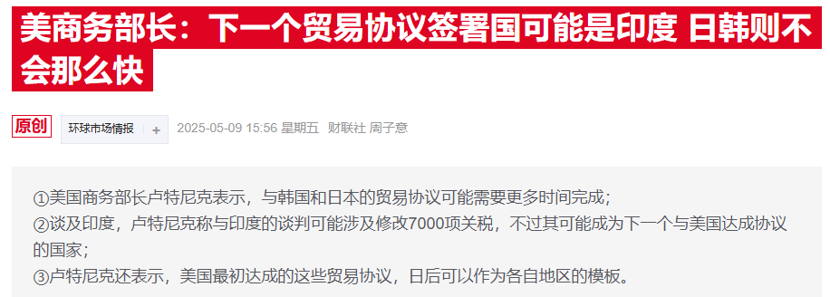 一位印度政府官員稱,繼英國之後,印度和日本是接下來兩個即將敲定協議的國家,“我們將拭目以待,看看哪個國家會先達成協議。”