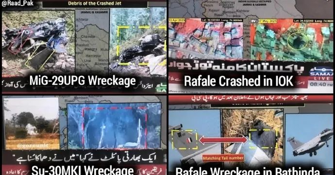 而除了封禁大量社媒賬號,又一架陣風被擊落,女飛行員被俘外,今天巴基斯坦也同時公佈了5月7號,巴空軍完勝印空軍,擊落多架陣風和米格的情況