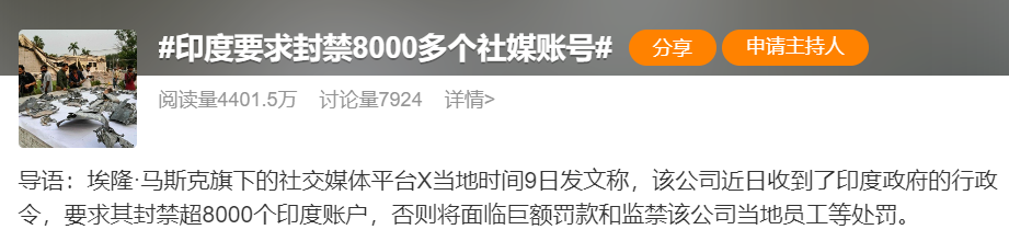 更狠的是在自媒體領域,印度要求馬斯克封禁8000多個涉及專門黑印度的印度賬號