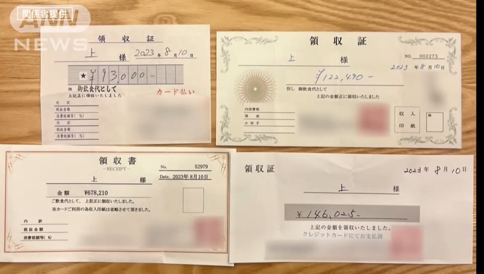 近日,日本ANN NEWS突然曝光了4張收據,收據的日期都在同一天,名目基本都是飲食代,數額大到讓人瞠目結舌。
