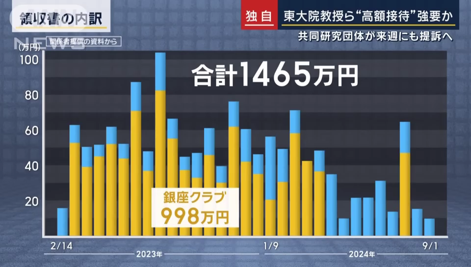 而大家看到的這幾張收據不過是冰山一角,據提供接待的團體稱,為了招待好這兩位教授,前前後後累計花費的招待費用就高達2000萬日元