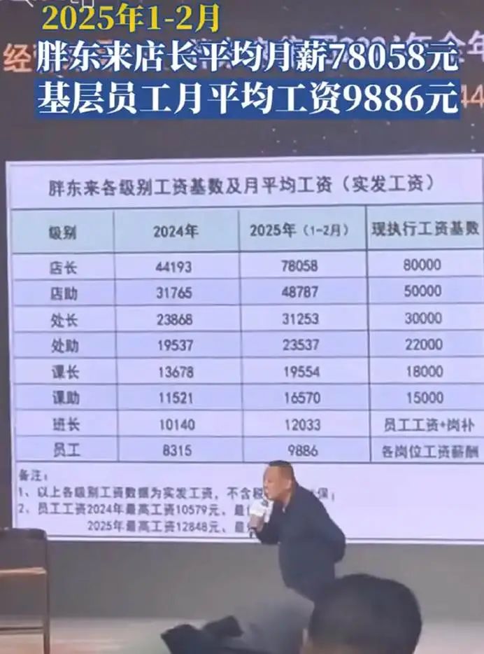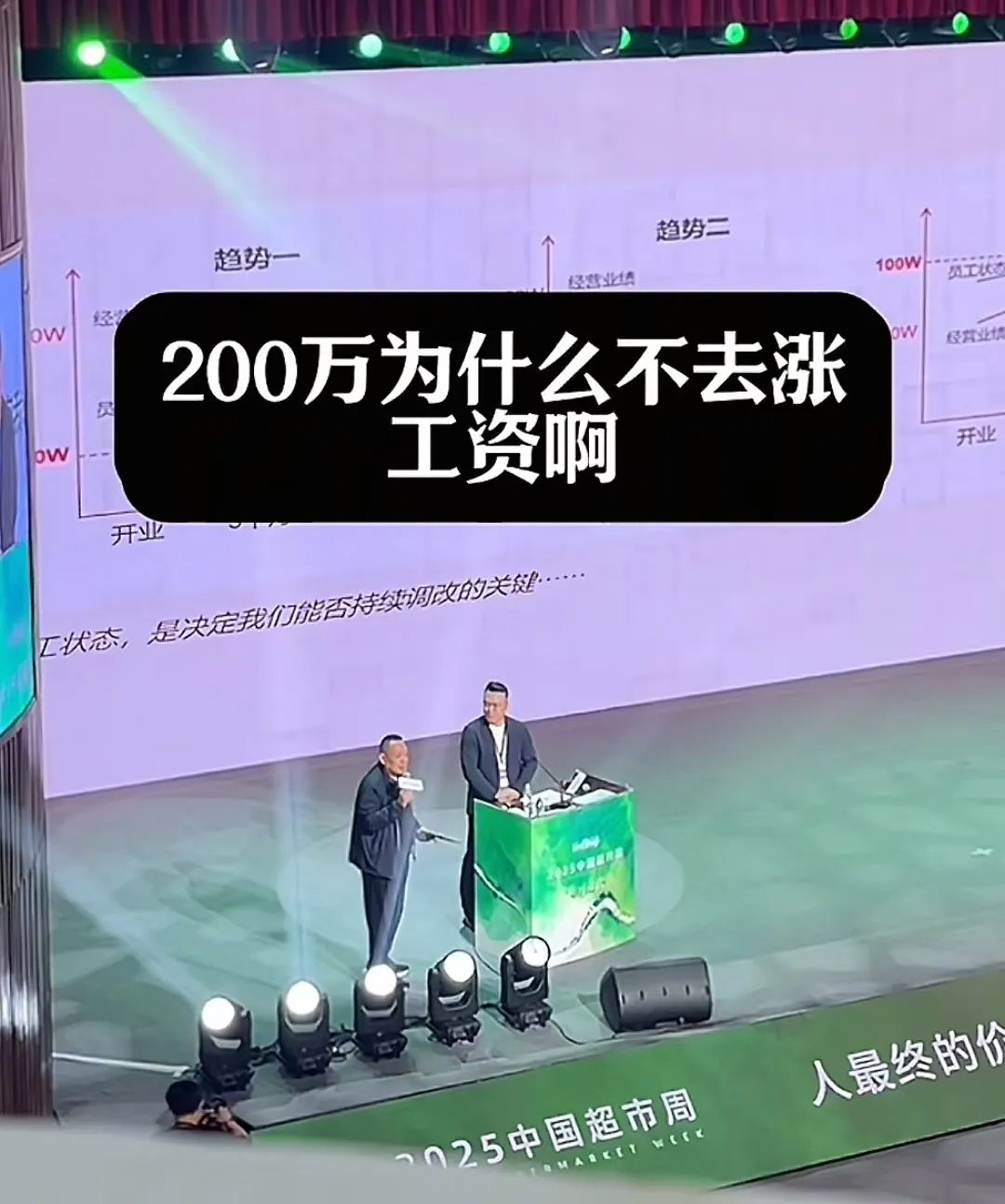 無獨有偶,今年在2025中國超市週上,一名永輝高管大談在調改之後,鄭州的一家永輝超市實現了每月盈利200萬。於東來當場打斷其發言,質問:“月賺200萬,為什麼不去漲工資?”
