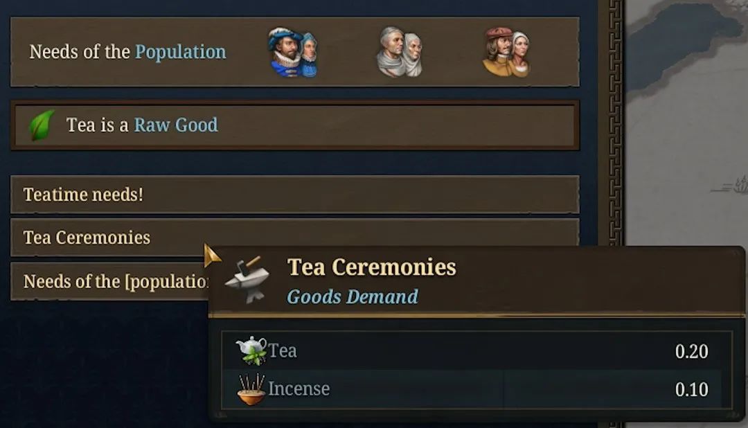 例如有階層的需求是喝上一口午後紅茶,那就得確保有人種茶,也得有人產糖,不會憑空從市場里長出來——玩家得圍繞着一個動態且完整的供應鏈不斷進行調整。