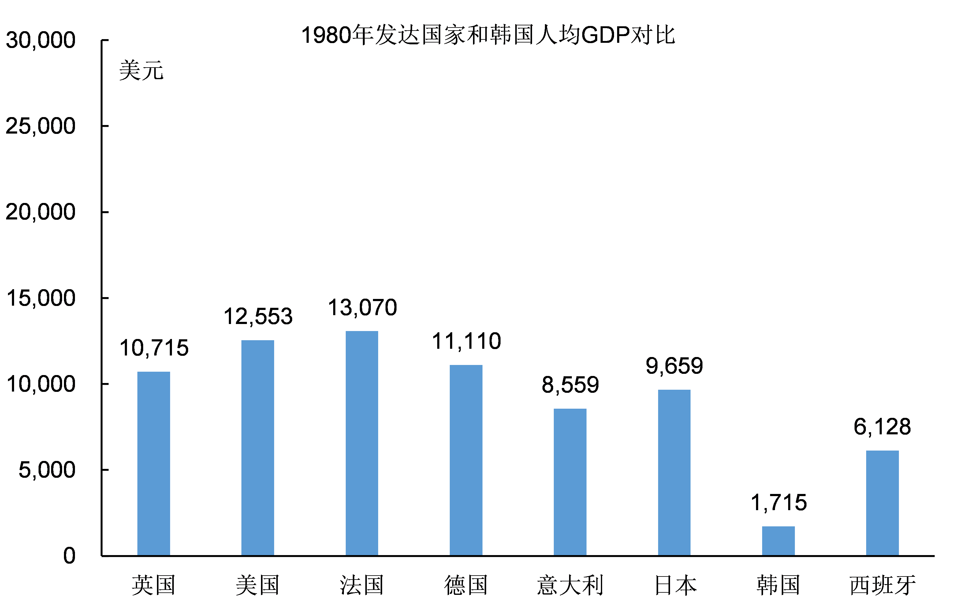 圖1:1980年韓國和發達國家人均GDP對比
