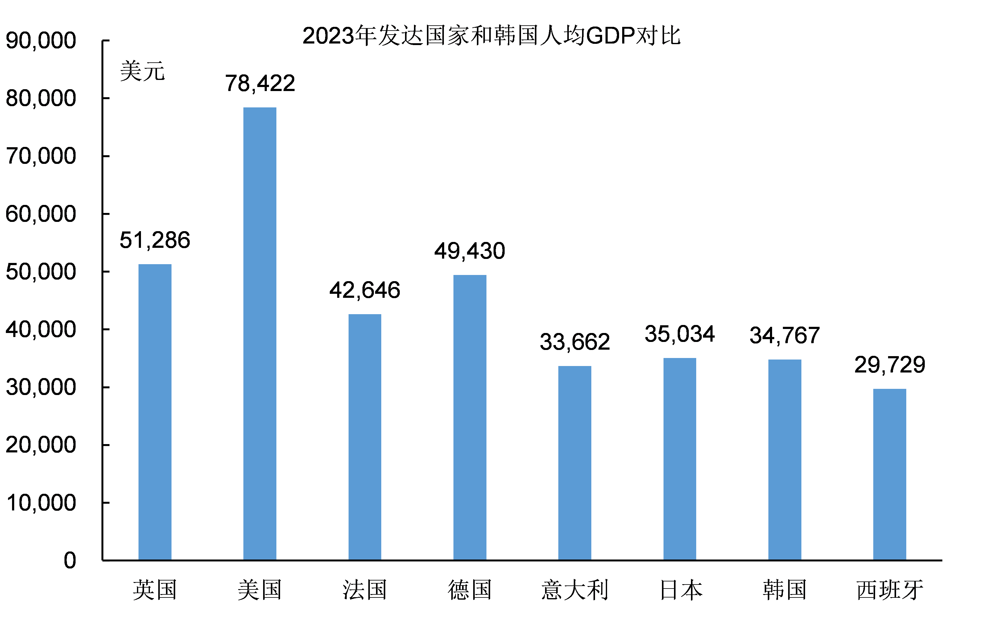 圖3:2023年韓國和發達國家人均GDP對比
