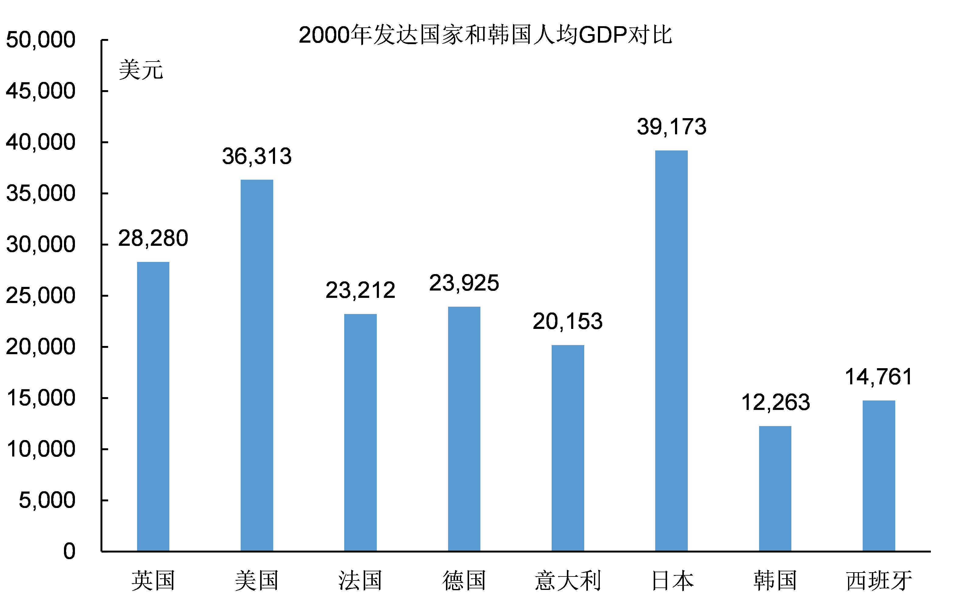 圖2:2000年韓國和發達國家人均GDP對比
