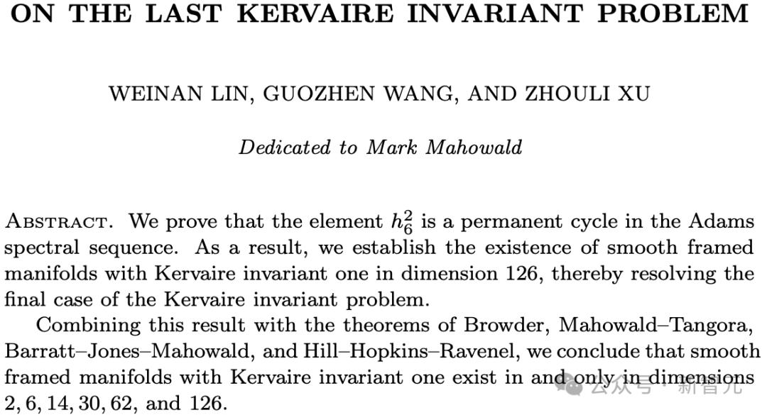 他們最終確認:Browder的特殊點確實能存活至無窮頁——這意味着126維空間中存在具有Kervaire不變量1的流形。