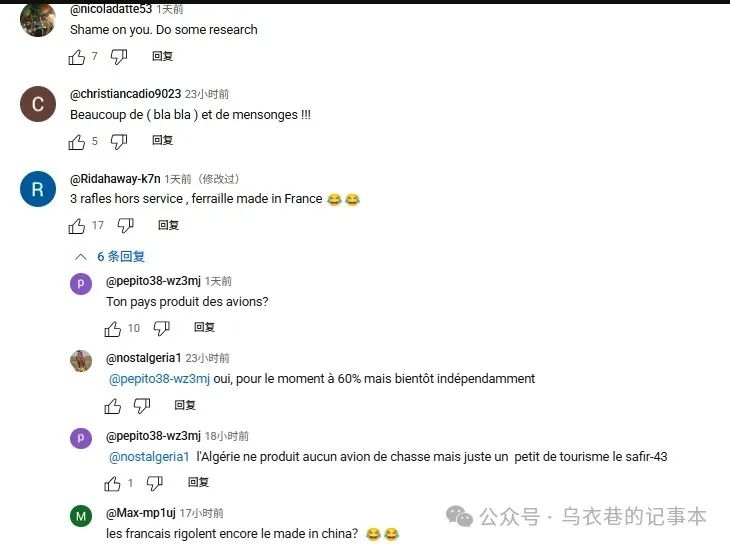 看這評論,估計一名法國網友和一名阿爾及利亞網友吵了起來。