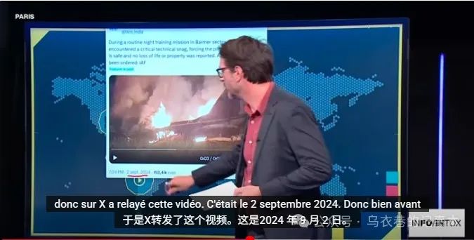 簡單來説,就是法國24台對網絡(Facebook、X(原twitter)等平台)上流傳的陣風戰機被擊毀的殘骸照片和視頻,通過反向圖像搜索等手段,證明這些照片和視頻並不是在最近的印度和巴基斯坦交戰中被擊毀的陣風戰鬥機的照片和視頻,而是很久很久之前就存在的。