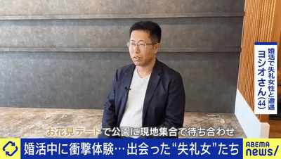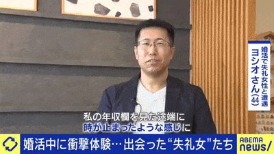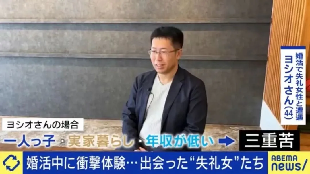 最初,ヨシオ選擇參加婚戀派對,希望通過面對面的交流找到合適的對象。但相親市場是殘酷的,他的低年收(350萬日元,約合人民幣16.5萬元)成為了被拒絕的首要原因。一位位相親對象都因收入、居住環境等問題對他望而卻步。
