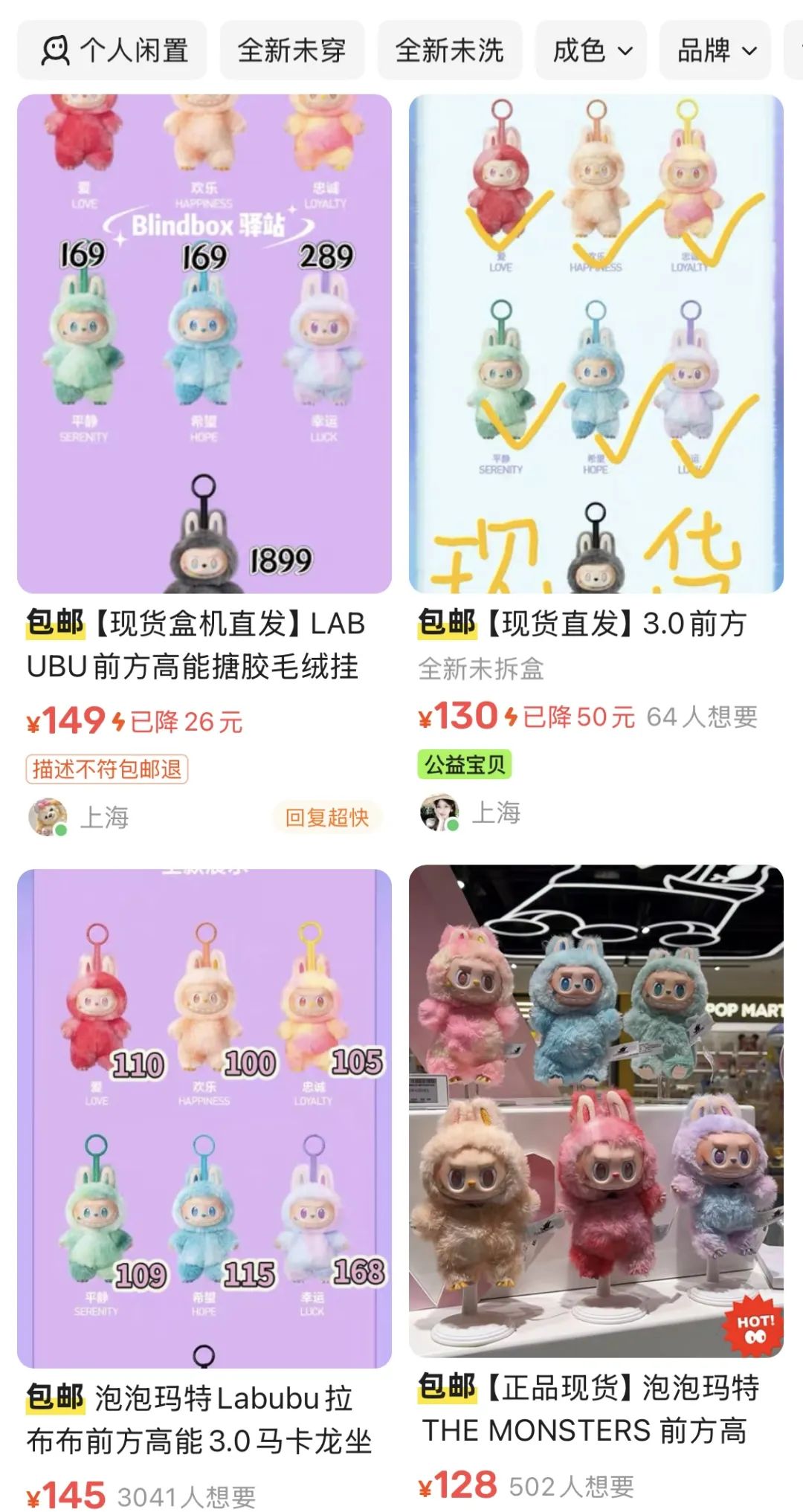 在海鮮市場上,官方定價99元/個的新品盲盒輕鬆被炒到130元+,指定款或者端盒買得額外加錢,至於隱藏款沒有1200元免談,對於一款量產型盲盒產品來説,如此火爆的行情確實稱得上瘋狂。