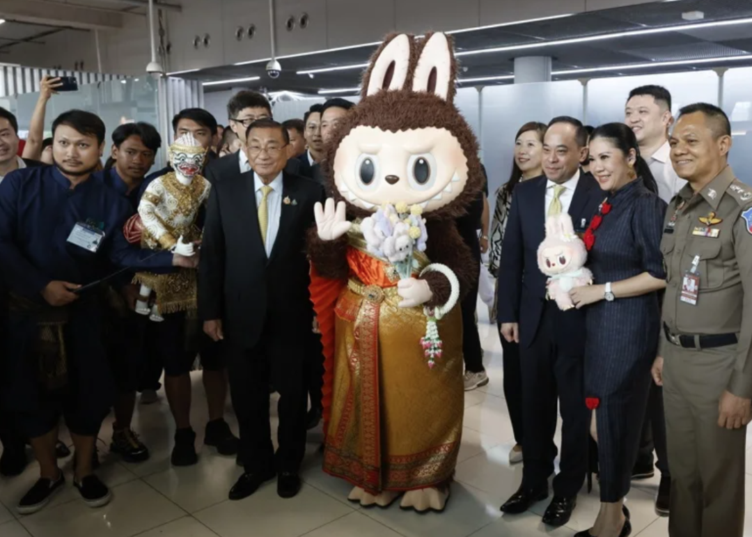 為了把握這波潑天流量,泰國旅遊局甚至還為這位“中國娃圈女明星”安排了一次盛大的官方接機禮,以官方的名義把LABUBU從中國請到泰國當一回“旅遊推廣大使”,大批局長、部長親自到機場迎接LABUBU,可謂娃生巔峯,牌面拉滿。